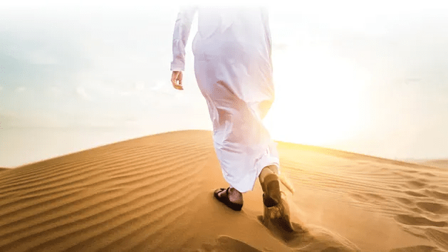 Cercana la treinta y siguiendo las indicaciones de su Padre divino, se retiró al desierto cercano a Jericó, esa zona árida y montañosa que se extendía desde el este de Jerusalén hasta el Mar Muerto, para prepararse espiritualmente, ayunar y orar antes de iniciar su etapa pública. Allí, fue tentado por el mal de los hombres ( el diablo ) al que venció fortaleciendo así la dependencia de su Padre, Dios. Ayunó durante cuarenta días y cuarenta noches en el desierto y allí, hambriento, respondió así al demonio tentador, hasta en tres ocasiones: «No solo de pan vive el hombre». Demostrando así su capacidad para vencer la tentación.